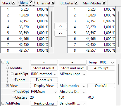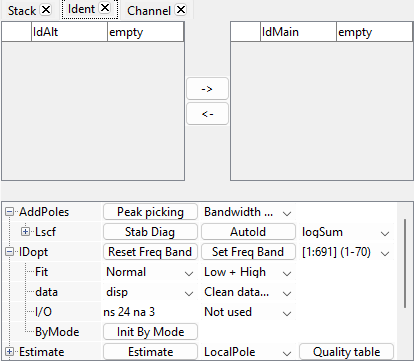 To initialize the identification by block, activate tab Ident, expand IDopt and click on Init By Mode.In the Ident tab, a block of buttons By has appeared.