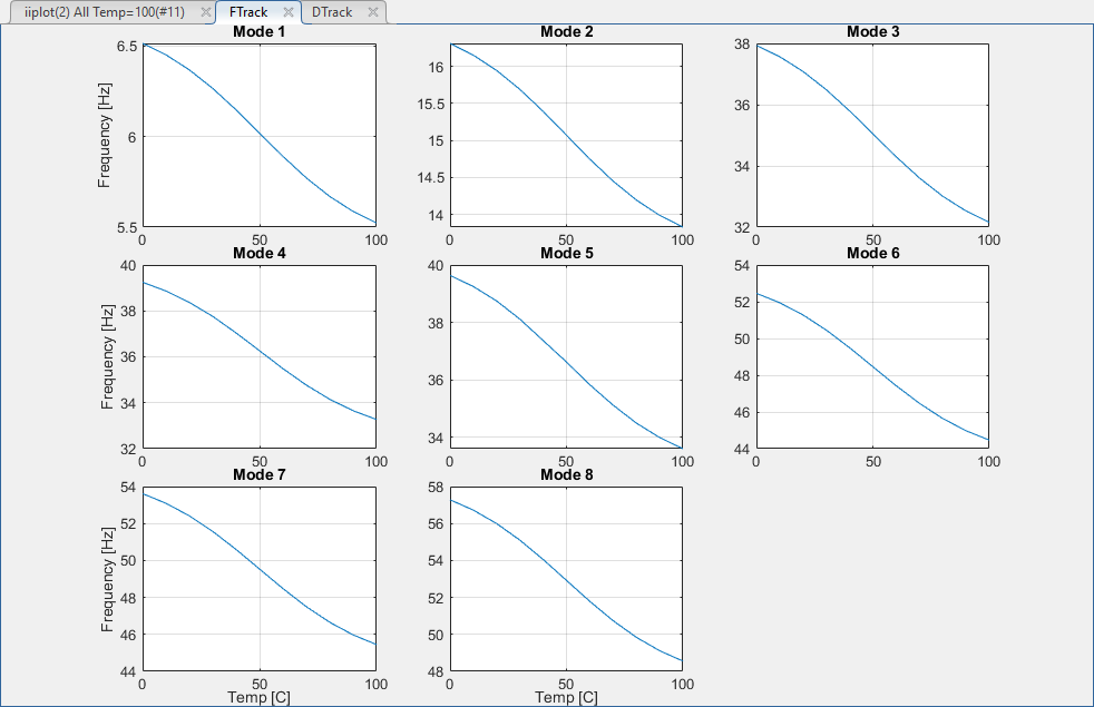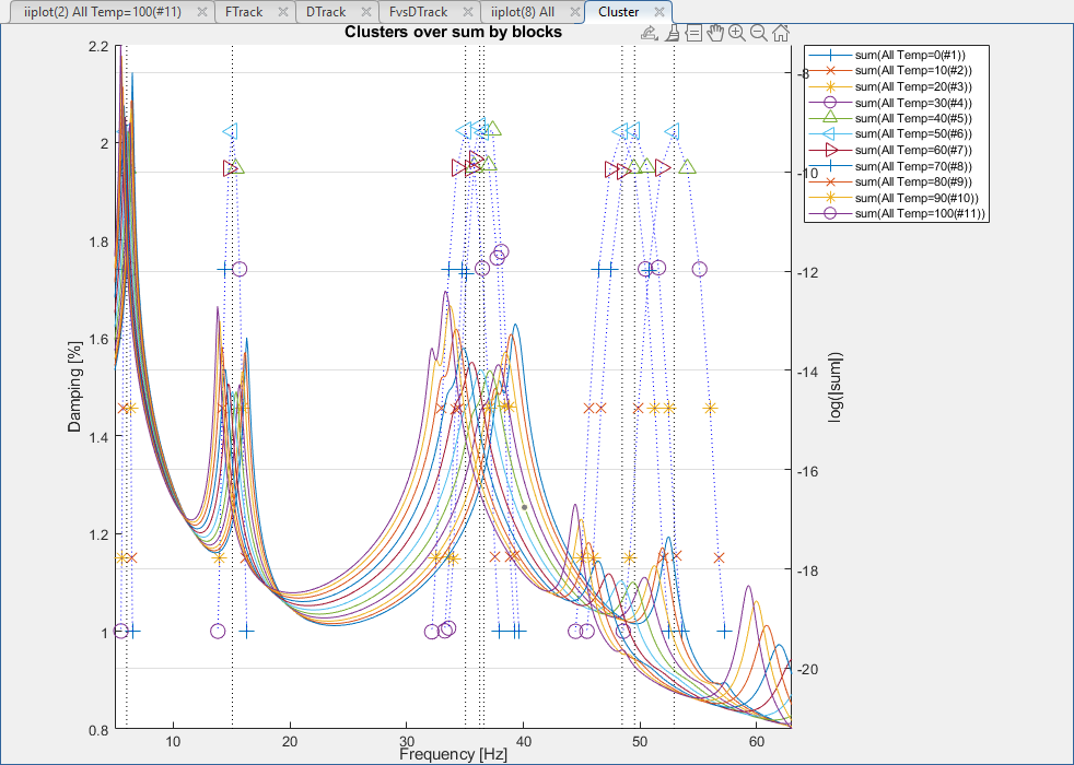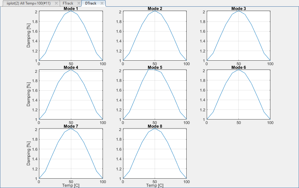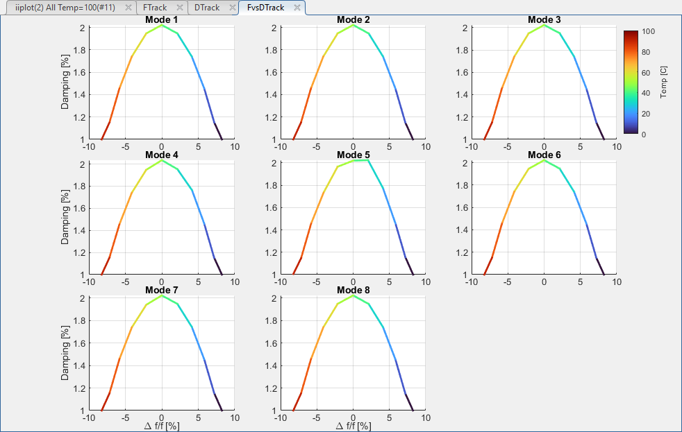 Pole tracking with parameter (here temperature) can be analyze with SDT views.