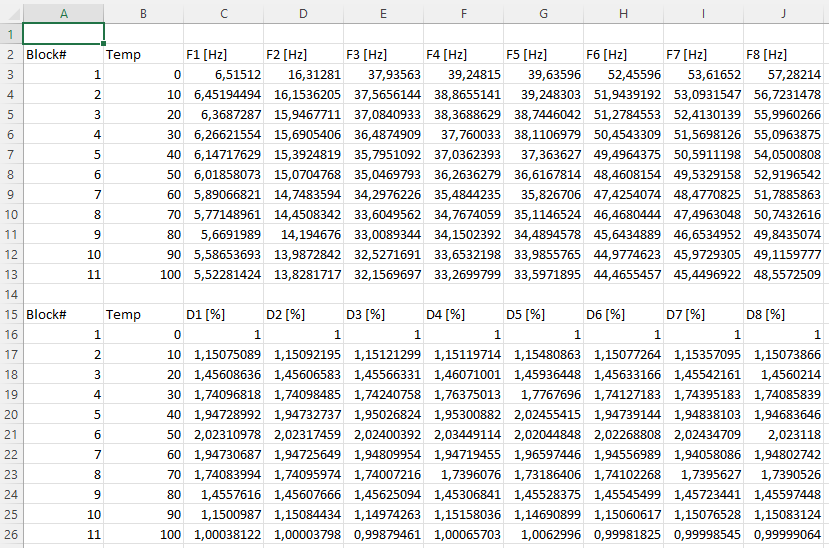 on View.This opens the two figures showing frequency and damping evolution of each mode with temperature.