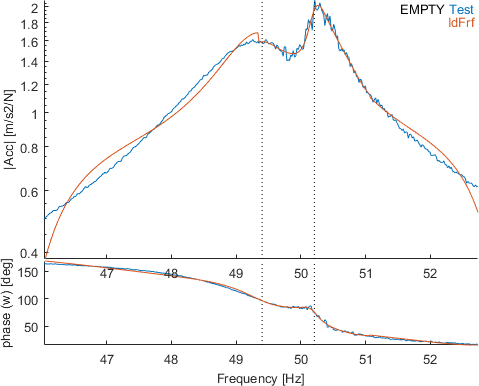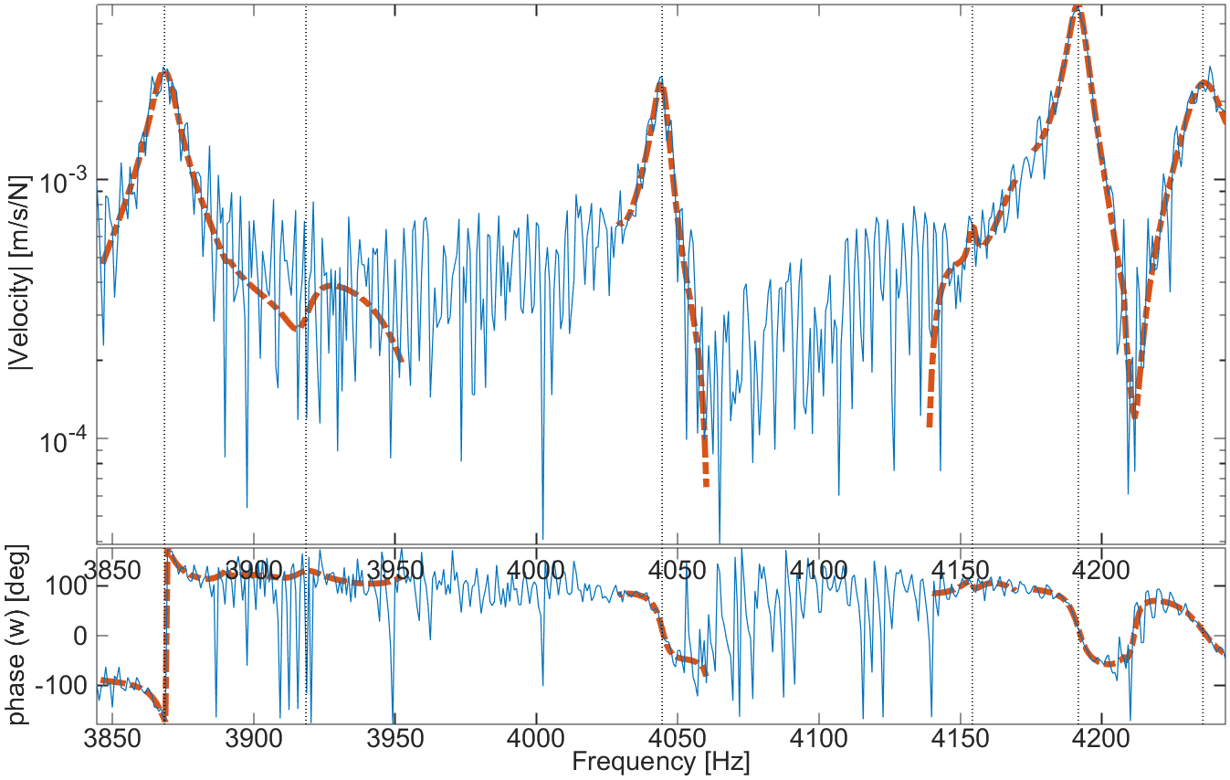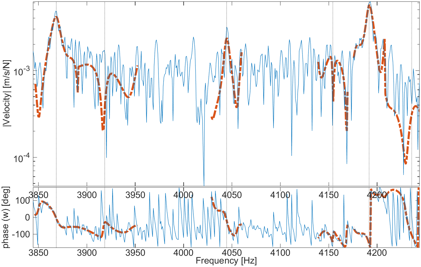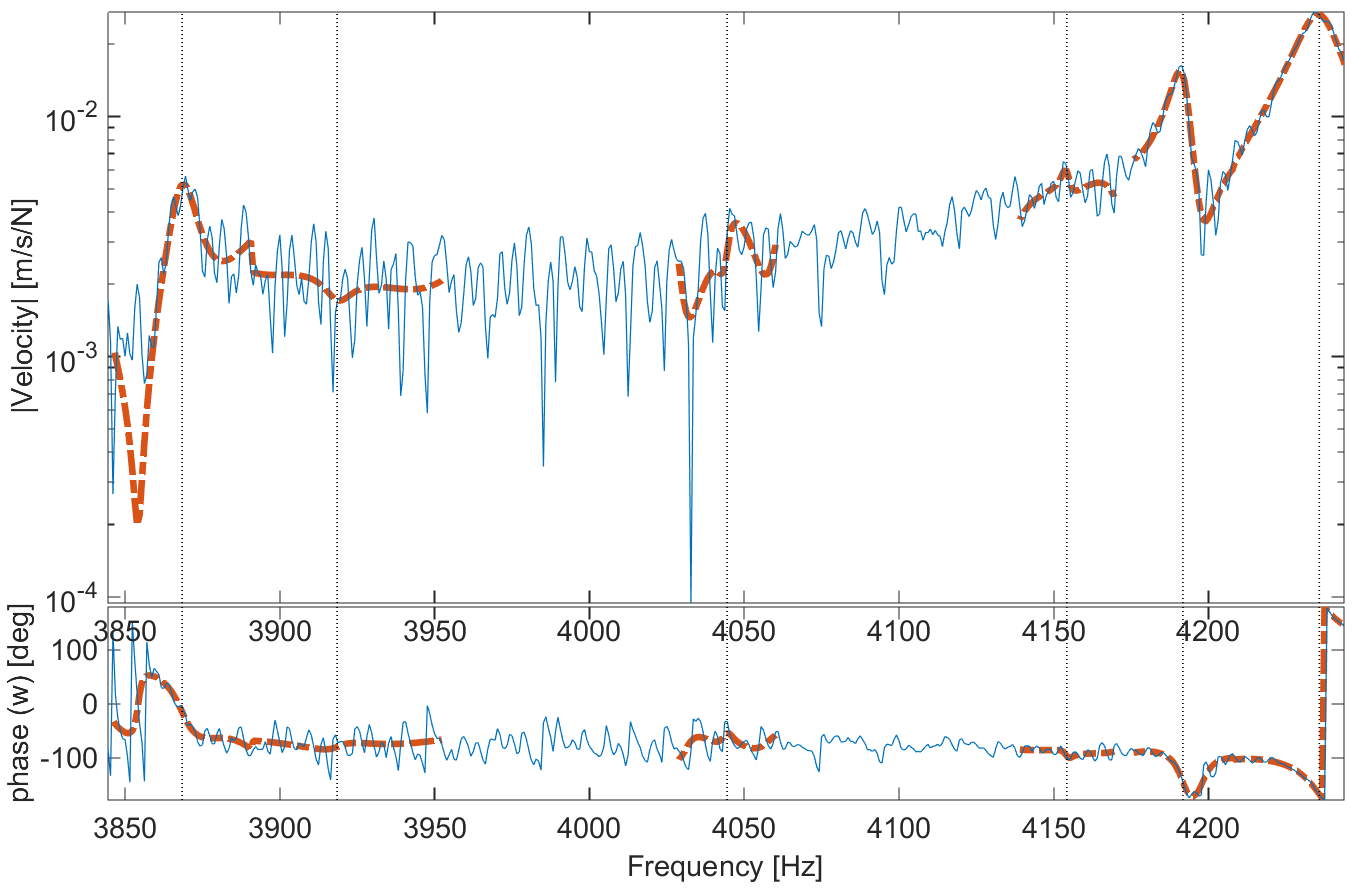 Keeping out of band modes when doing narrow band pole updates is thus quite important. You may also consider identifying groups of modes by doing sequential identifications for segments of your test frequency band [18].