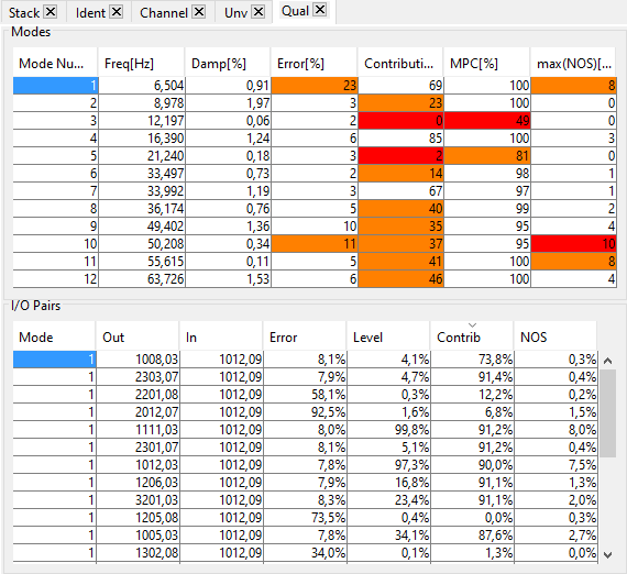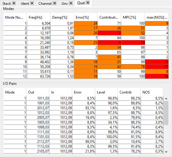 To analyze the quality of the identification, several criteria definined by mode and by transfer have been developped to help navigate through the data. The quality table and its analysis are described in section section 2.5.2.