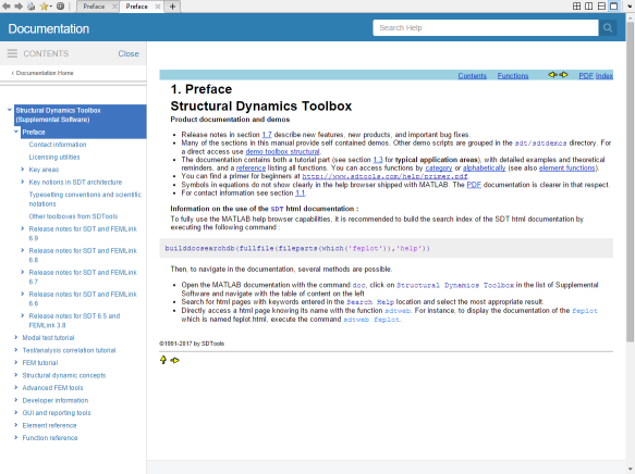 - Directly access a html page knowing its name with the function sdtweb. For instance, to display the documentation of the feplot function which is named feplot.html, execute the command sdtweb feplot.