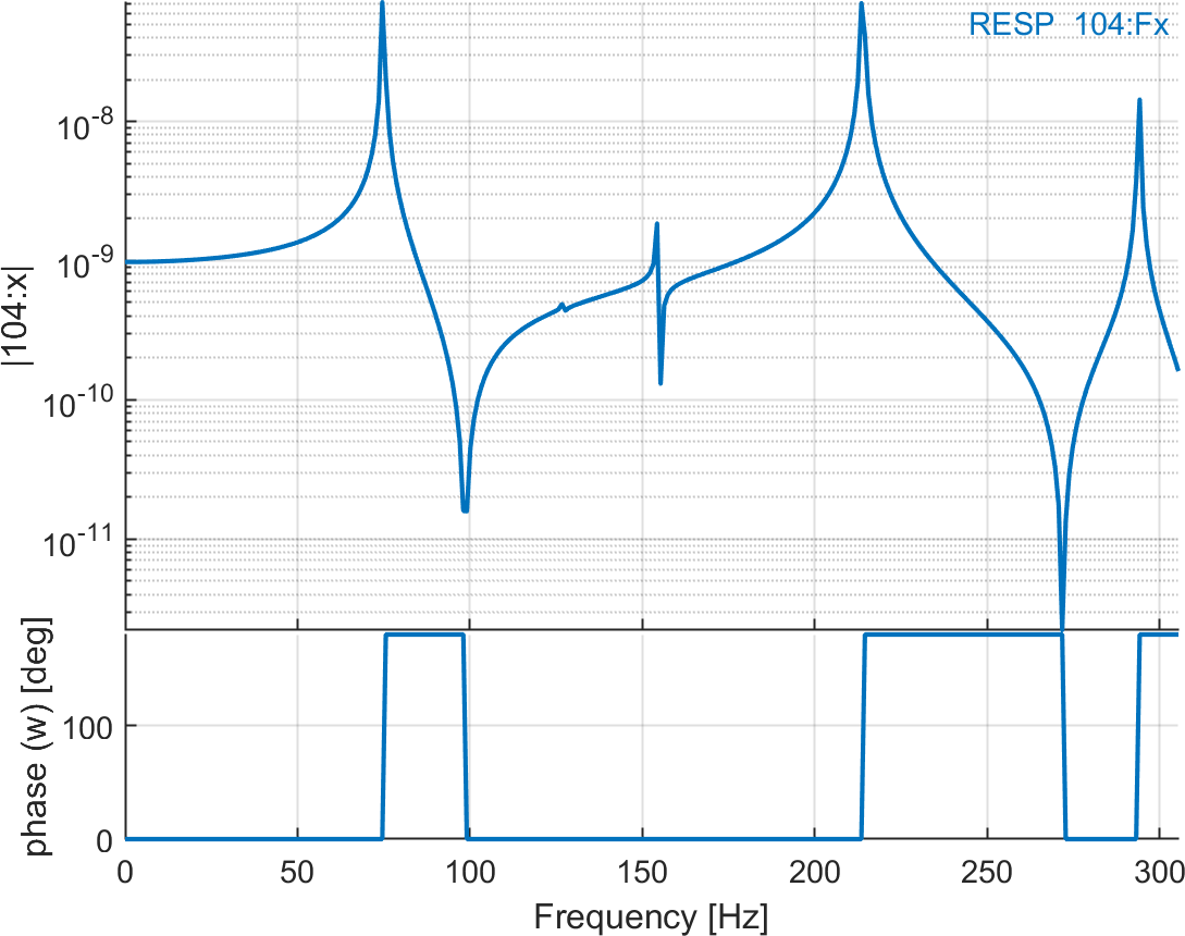 %% Step 2 : Introduce collocated force actuator and compute response model=fe_case(model,'DofLoad SensDof','Collocated Force','Point Sensors:1') % 1 for first sensor if there are multiple