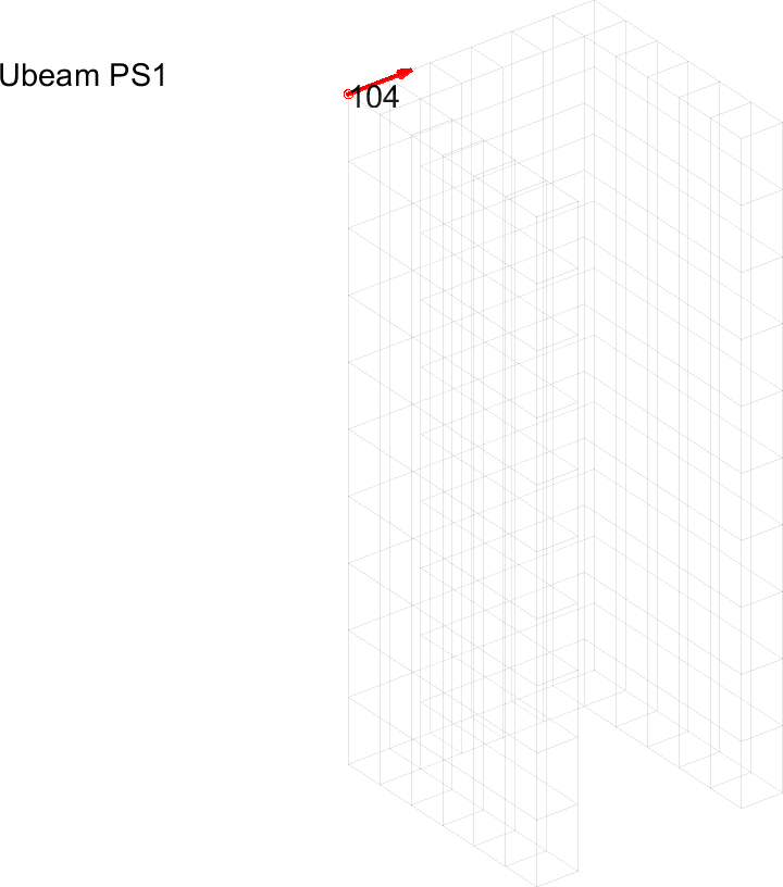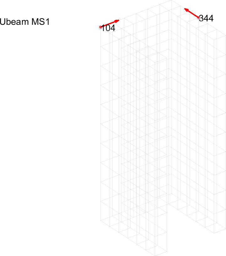 Figure 4.1 shows the finite element mesh of the U-beam with a sensor added on node 104 in the x-direction.