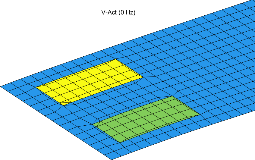 The model obtained is here the same as the one previously obtained with manual meshing. The static response when actuating the first piezo patch is computed in