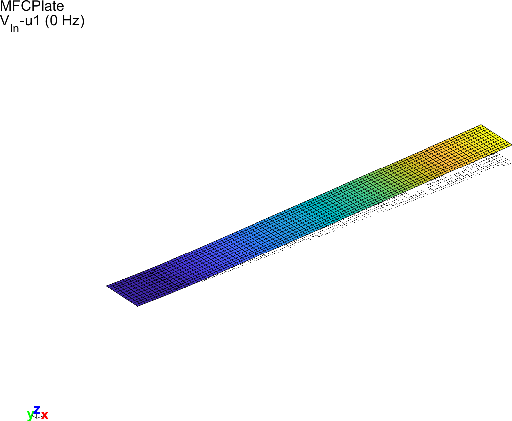 . The torsion can be easily seen by looking at the deformed shape resulting from the combination of the two MFCs with opposite signs which cancels the bending effect, as shown in Figure 7.27.