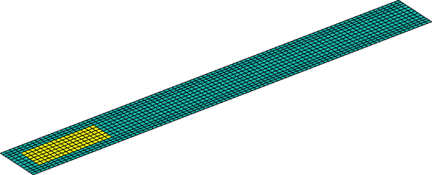 The following example is the integration of two P1-type MFC patches on a beam, modeled with multi-layer shell elements.
