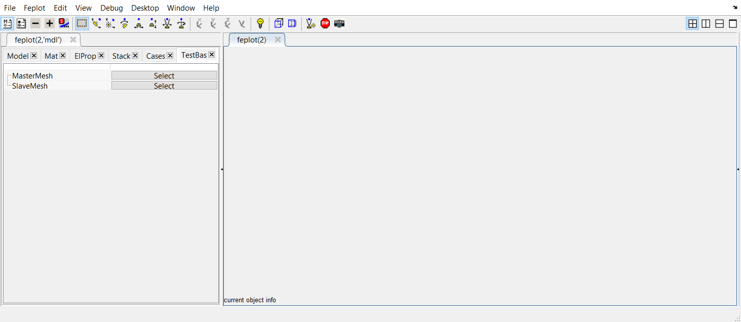 % Loading the interactive test mesh placement GUI cf=demosdt('demo garttebasis closeall'); % Load the demo data cf.CStack{'sensors'} % contains a SensDof entry with sensors and wireframe fecom(cf,'setTestBas'); % Open interactive tab in feplot properties