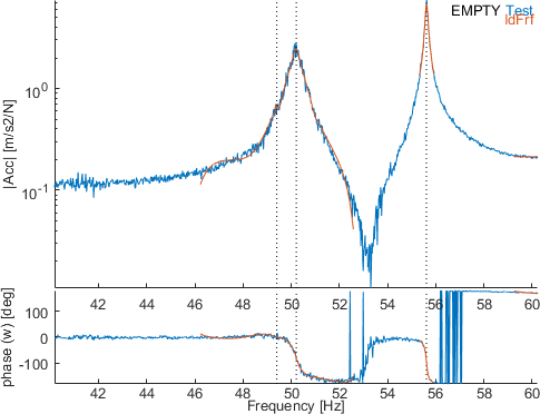 In this case, and if a broadband model is not necessary, it is most of the time preferable to perform a sequential identification with a narrow band arround each mode to extract the residuals. This is automaticaly achived using the command idcom estlocalpole (corresponding in the Ident tab to the button Estimate associated to LocalPole).