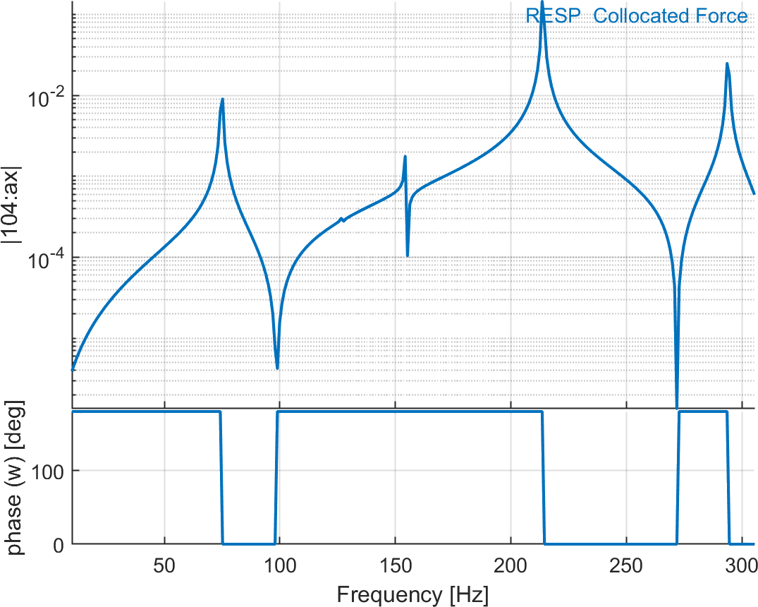 %% Step 2 : Introduce a point displ/vel/acc sensor and collocated force model = fe_case(model,'SensDOF','Sensors',{'104:x';'104:vx';'104:ax'}); model=fe_case(model,'DofLoad SensDof','Collocated Force','Sensors:1'); % 1 for first sensor if there are multiple